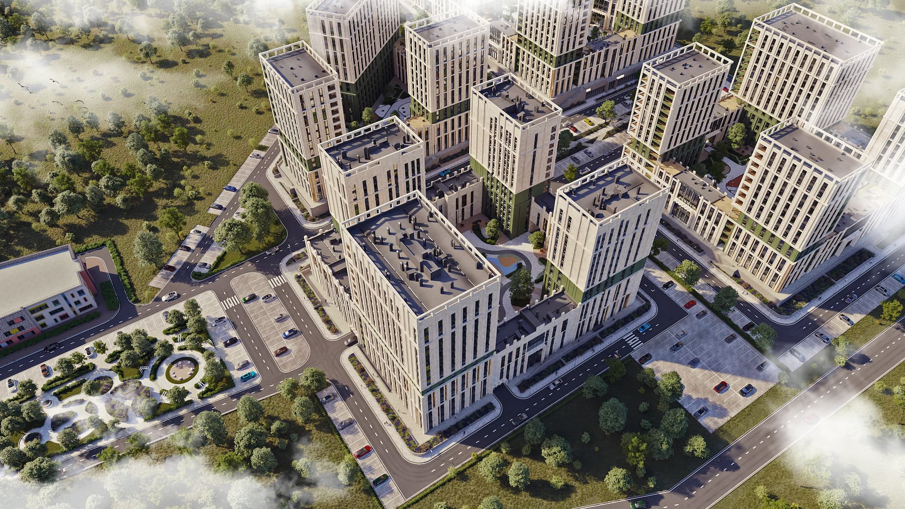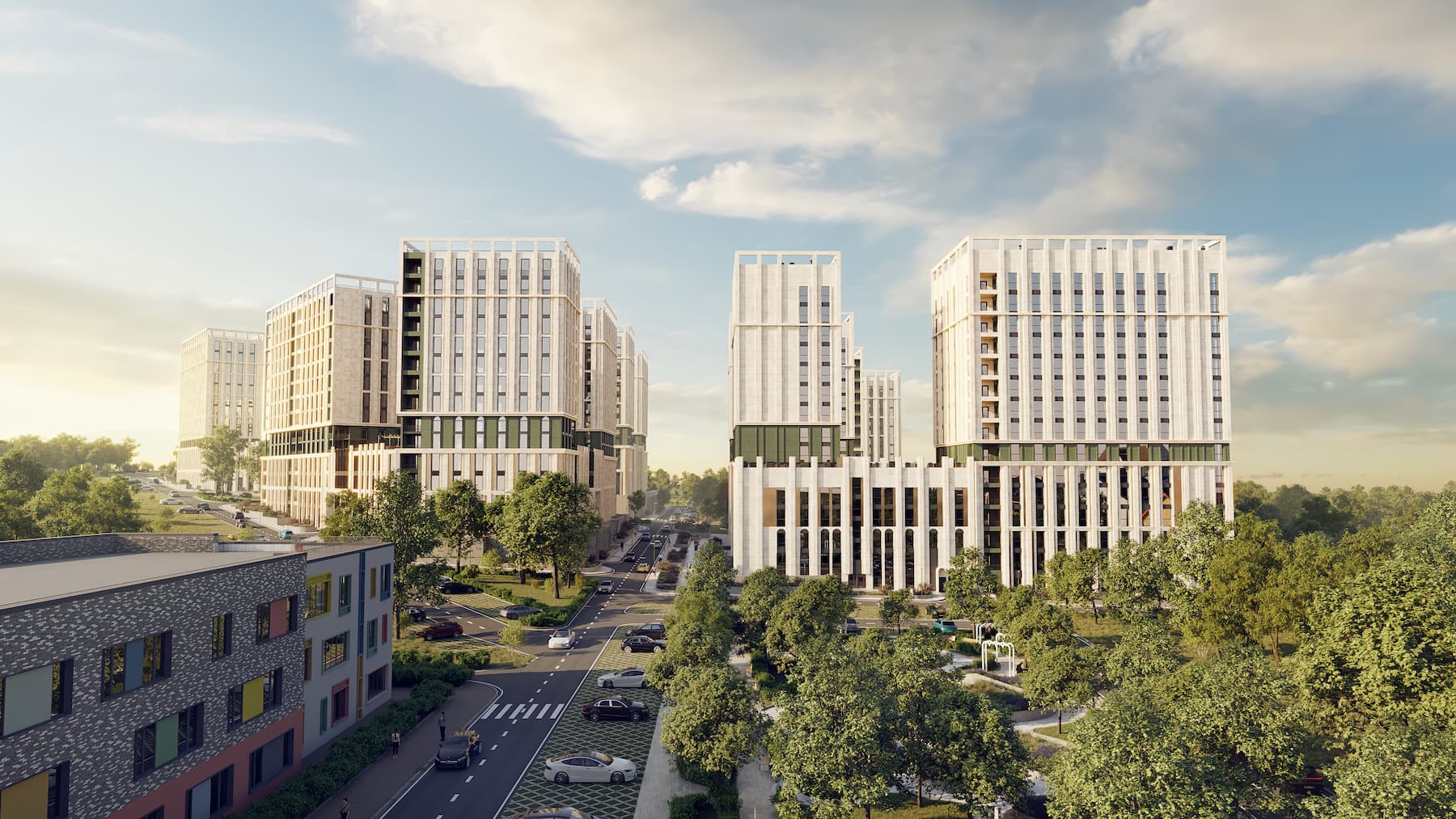 Шепот листвы среди более чем 15 видов растений, уютные деревянные настилы, многоуровневые детские площадки и современная комфортная уличная мебель создают 0,5 га гармонии и спокойствия.