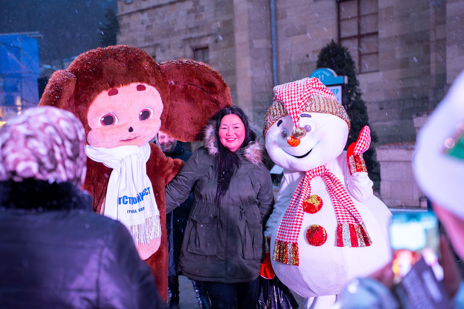 На Курортном бульваре гостей встречали ростовые куклы — Снеговик и любимый всеми Чебурашка, с которыми гости мероприятия с радостью фотографировались. Всем желающим раздавали яркие брендированные шарики.