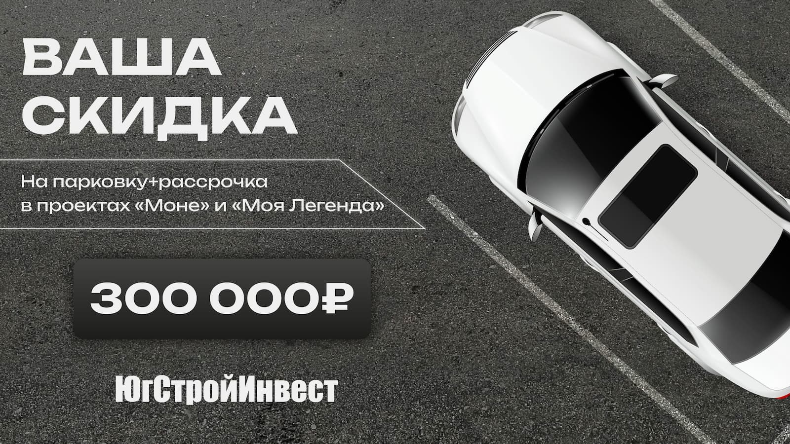 Хотите забыть о поисках места для автомобиля и обеспечить ему надежную охрану? ГК «ЮгСтройИнвест» предлагает уникальное предложение: парковочное место в квартале на курорте «Моя Легенда» и в доме у озера «Моне» всего за 1,1 млн рублей. Ваша выгода составит 300 000 рублей!