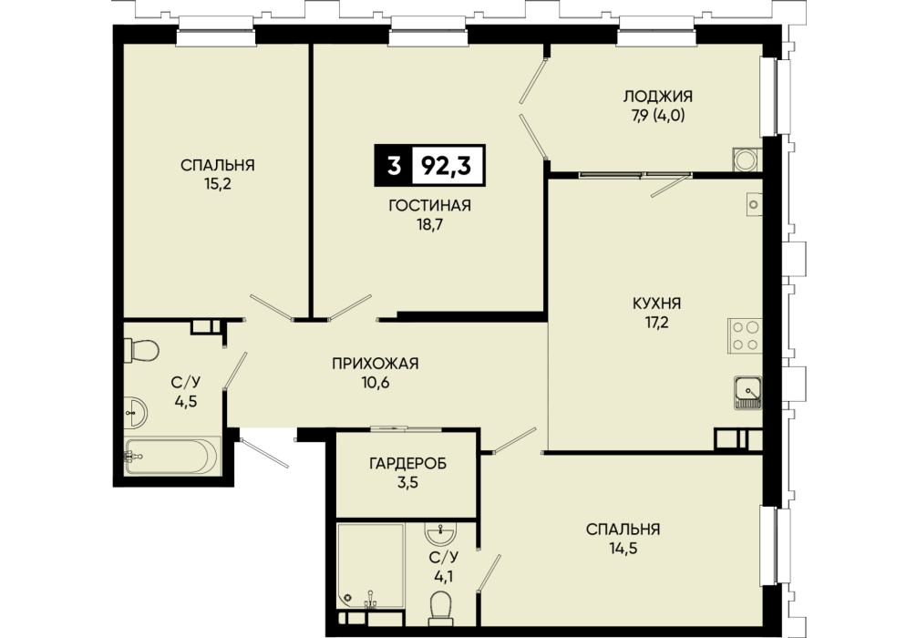 92,3 м²
