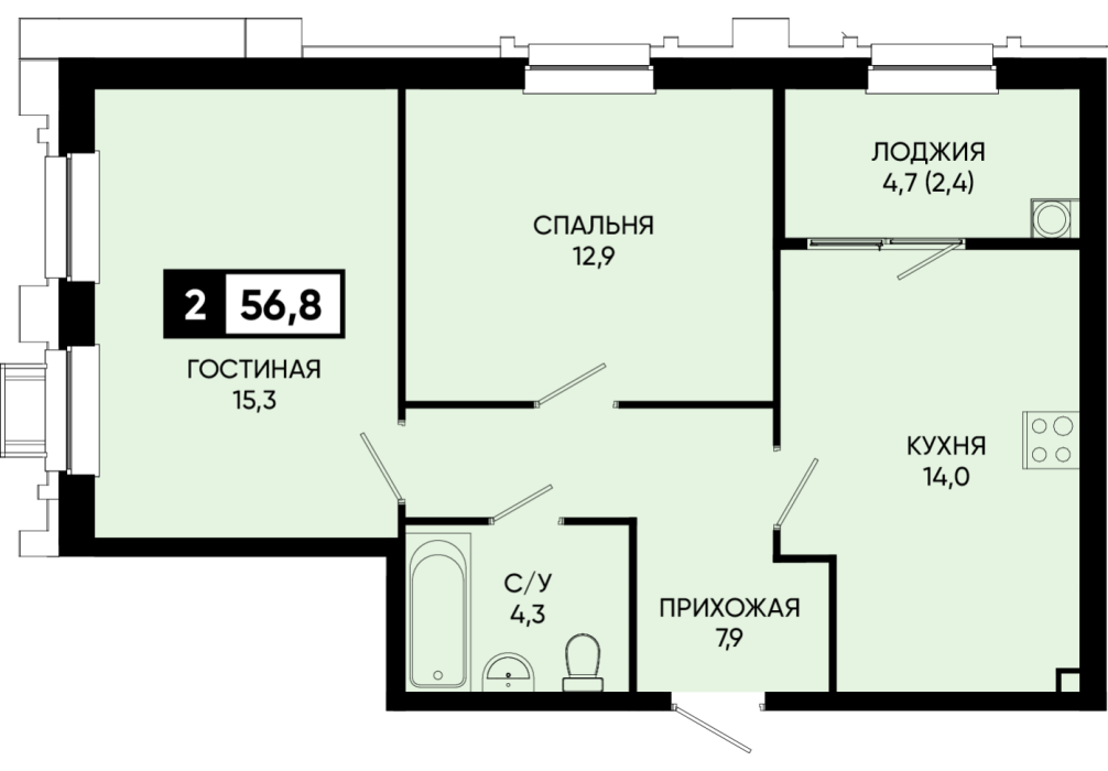 56,6 м²